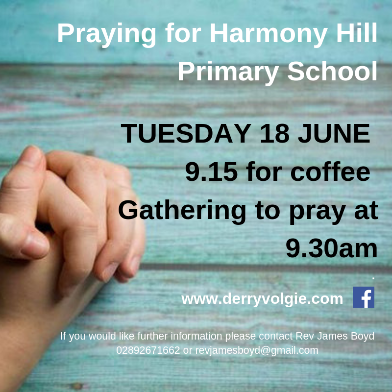 Do you have a child/grandchild/neighbour at Harmony Hill Primary School? Do you know staff members or volunteers? Or do you just want to pray for the school and all who are associated with it? If so, please join us this Tuesday morning as raise the school up in prayer