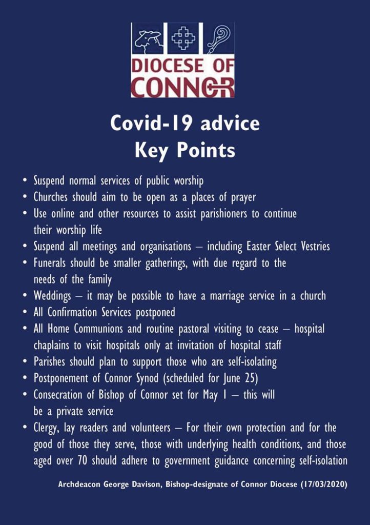 A summary of the key points in Bishop-designate George Davison’s letter issued today to clergy, lay readers and parishes in relation to Covid-19. Full letter at https://bit.ly/2Qpbqyq