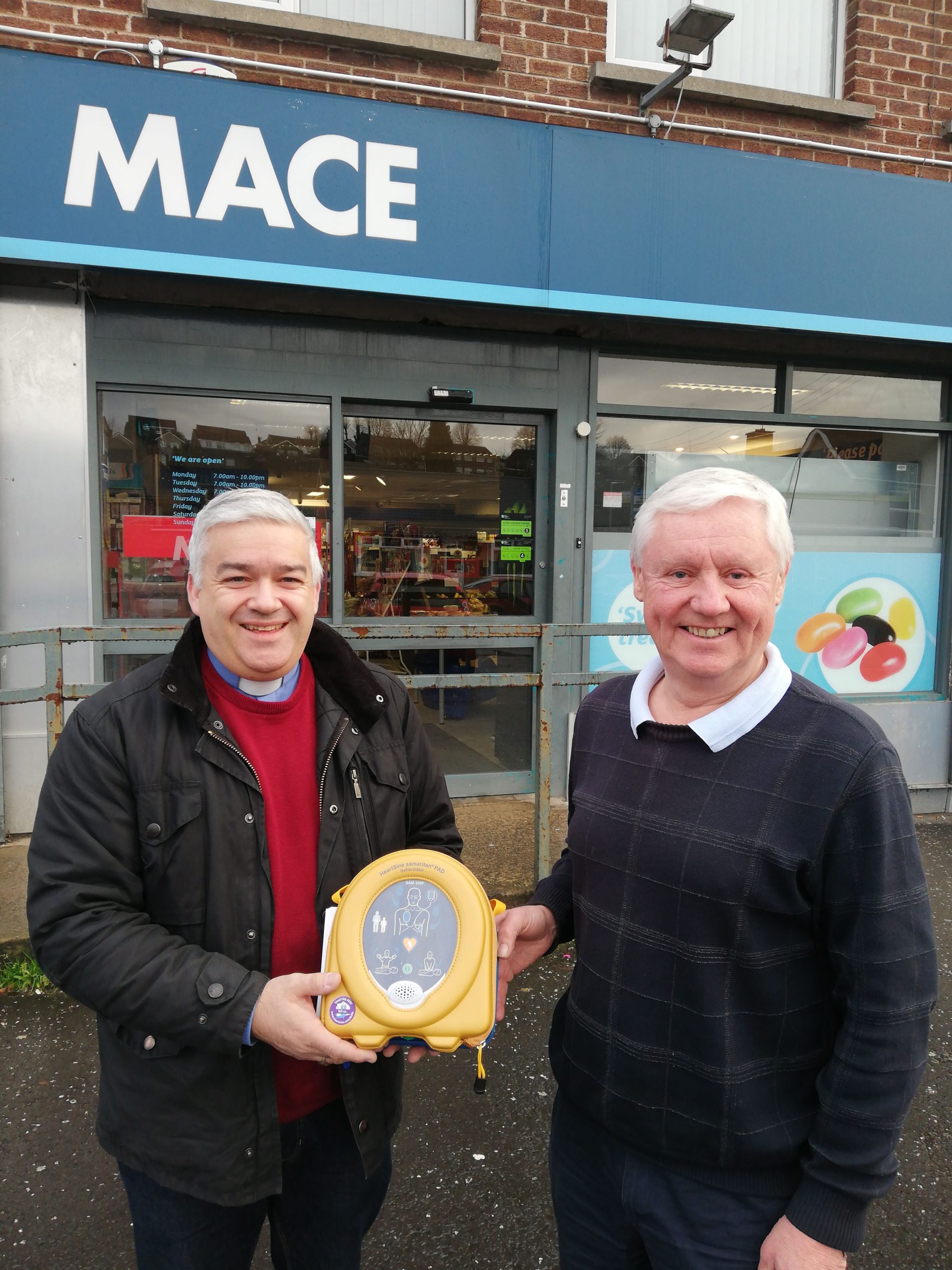 As a means of recognising this historic connection, St Columba’s was pleased to offer a defibrillator to the Mace supermarket for use in the Derryvolgie community. Ian Hall, manager of the supermarket, welcomed the gift from St Columba’s. “We are pleased to have this resource for use should an emergency arise, “ he said. “We acknowledge and appreciate the thoughtful gesture from St Columba’s.”