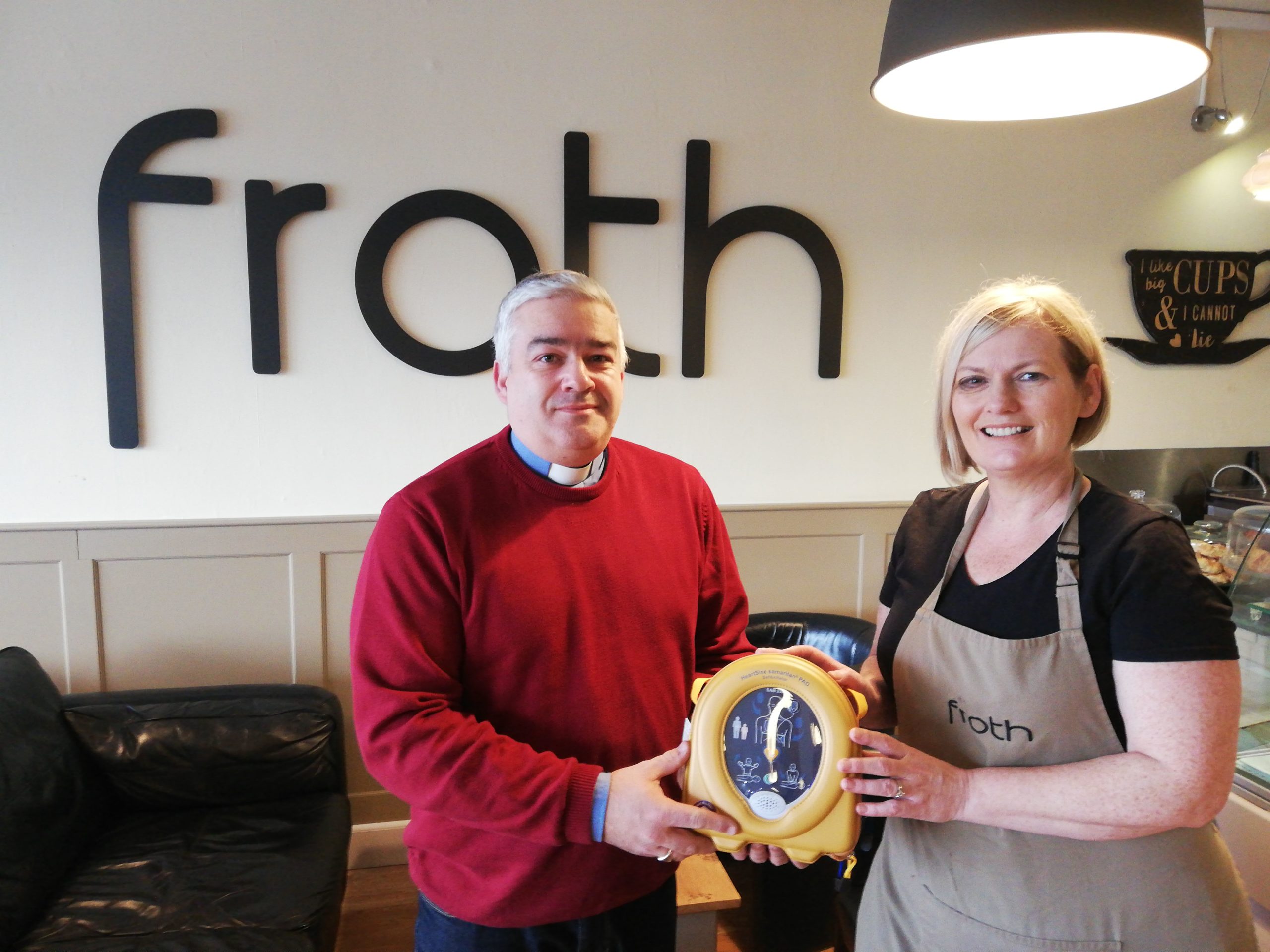 A second defibrillator was presented to FROTH coffee shop at the Skyline Shops. ‘It’s to great to be able to partner with the local church and offer this much needed service to the local community’ said Karen the proprietor of FROTH.