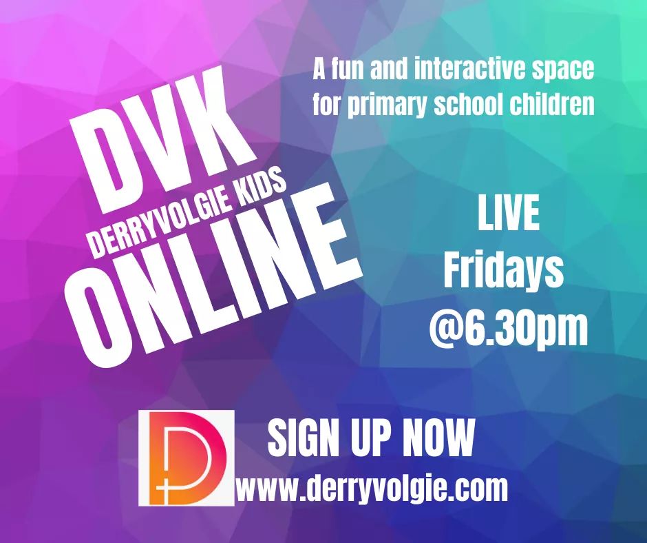 We are excited to launch our brand new children’s ministry DVK (Derryvolgie Kids) online. We will be going live each Friday night from 18th September at 6:30pm for approximately 30 minutes. It will be a fun and interactive time for all primary school aged children to learn more about Jesus and hang out.
